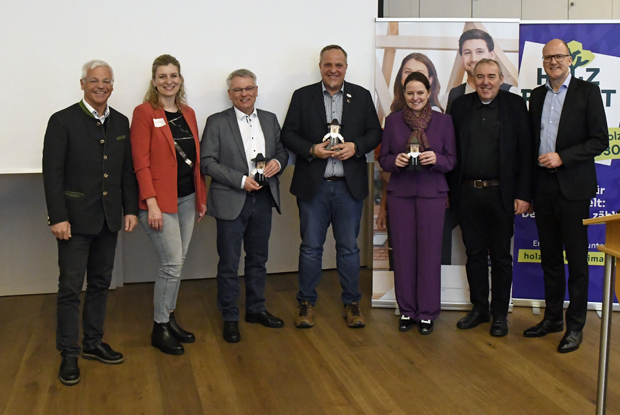 Präsident Peter Aicher informierte in seinem Kurzvortrag „Praxisrelevante Forschung und Entwicklung für den Holzbau“ über Zukunftsthemen und Forschungsprojekte, die den Holzbau beschäftigen.